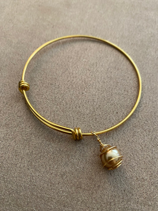 Handmade Single Loop White Rattan Black Pearl Earrings
